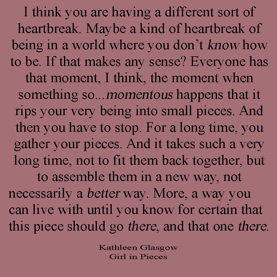 Υπάρχει κάτι στο σκοτάδι που δεν αντέχουμε να ομολογήσουμε. Κάτι που κρύβεται μέσα μας, ανάμεσα στις σιωπές, στις σκέψεις που δεν τολμάμε να εκφράσουμε. Η Kathleen Glasgow δεν φοβάται αυτό το σκοτάδι· το αγκαλιάζει, το εξερευνά, και το μετατρέπει σε λόγο που καίει σαν φωτιά και ταυτόχρονα θεραπεύει. Διαβάζοντας τα έργα της, νιώθεις το κεφάλι σου να σπάει, τα συναισθήματα να χτυπούν σαν κύματα, και το μυαλό σου να ανατινάζεται με την αλήθεια που ποτέ κανείς δεν τολμά να ψιθυρίσει δυνατά. Η γραφή της δεν είναι μόνο λογοτεχνία· είναι επανάσταση.